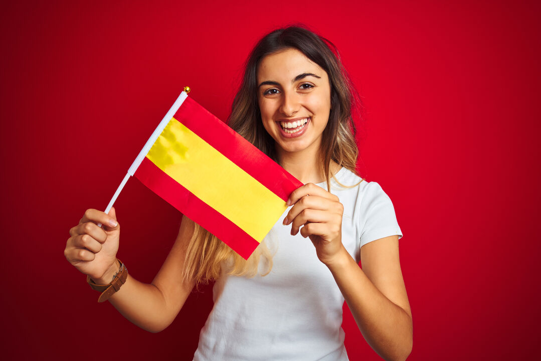 Bandierina della Spagna di dimensioni 29,5×20 cm. Realizzata in poliestere resistente, con unasta bianca di 40 cm e rifinita con una pallina in cima.