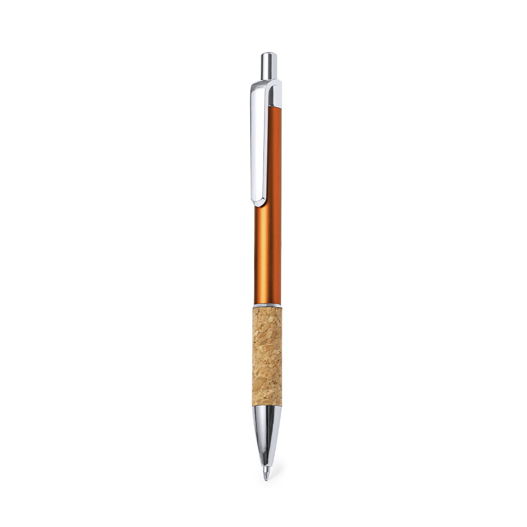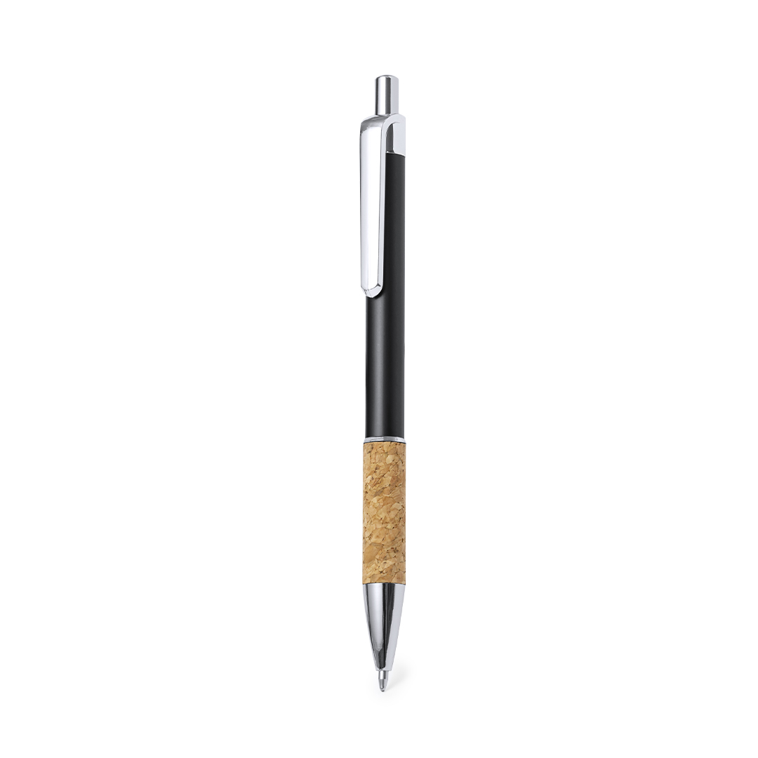 Elegante penna in sughero e alluminio con meccanismo a pulsante. Robusto fusto in alluminio con finitura lucida e impugnatura in sughero, con il fusto disponibile in vari colori. Clip in metallo e inchiostro blu. Presentate in un sacchetto individuale riciclato.Realizzata con elementi di origine vegetale per favorire luso di materie prime naturali e ridurre le emissioni inquinanti.