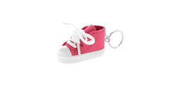 Portachiavi a forma di scarpa da ginnastica in EVA e PVC in divertente design bicolore e lacci bianchi. Confezionato singolarmente in polybag.